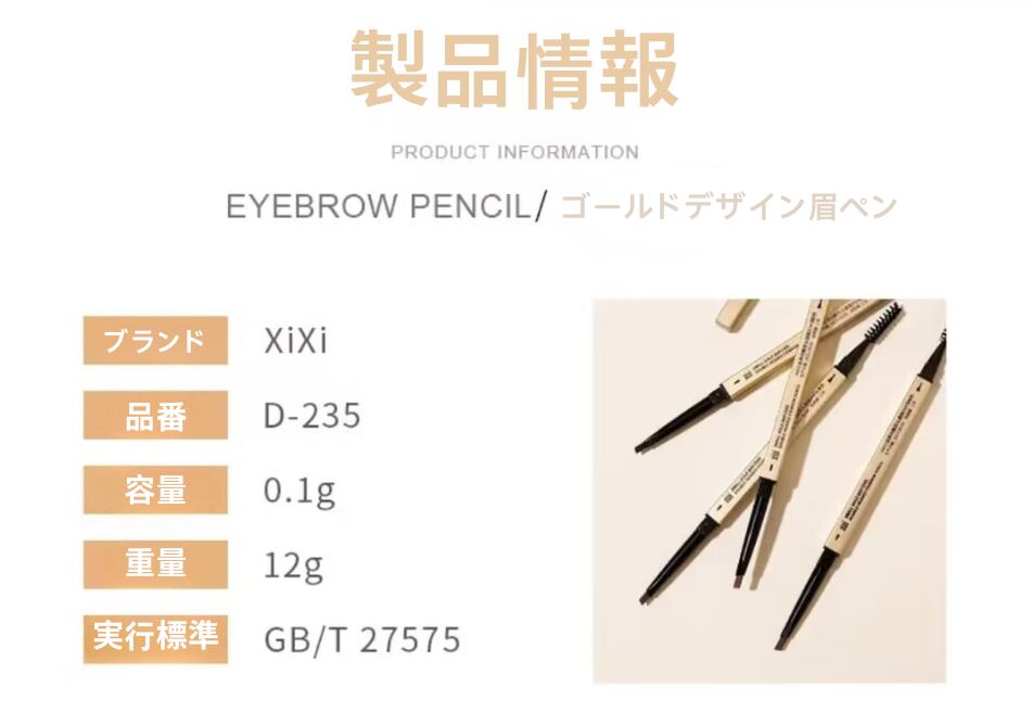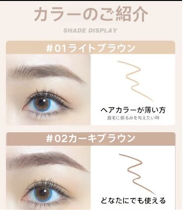 • 自動三角ペンシルと眉ブラシの2つを持っています。自動三角ペンシルは45°の角度で眉の型を精密に描き、眉ブラシは眉を自然に染めるのに役立ちます。