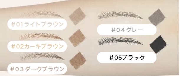 • #03ダークブラウン、#04グレー、#05ブラックなど、さまざまな髪色に合わせることができる色があります。