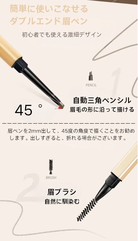 • 眉ペンを2mm出すだけで45度角になり、初心者でも簡単に上手に眉を描くことができます。