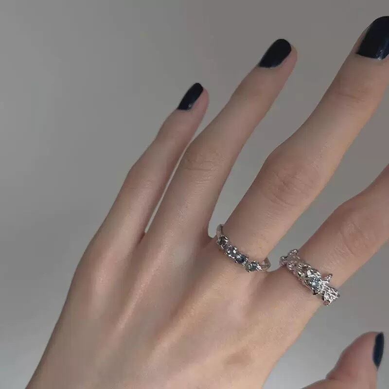 落ち着きのあるブルーが美しく輝くニュアンス風オープンリング。洗練されたデザインが魅力的で、カジュアルからフォーマルまで幅広いシーンで活躍するアイテムです♡